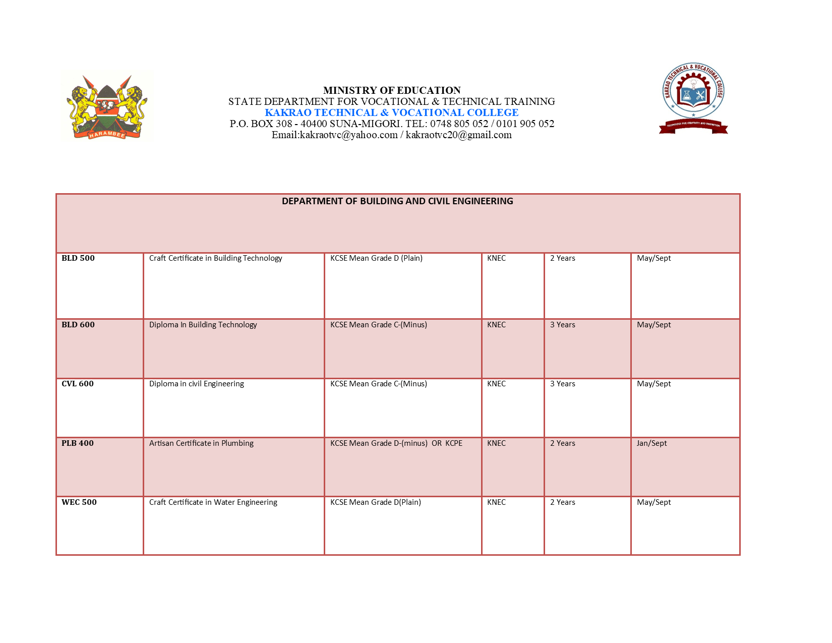 ©2021 Kakrao Vocational Training College | Along Kisii-Migori Road, Migori-Kenya